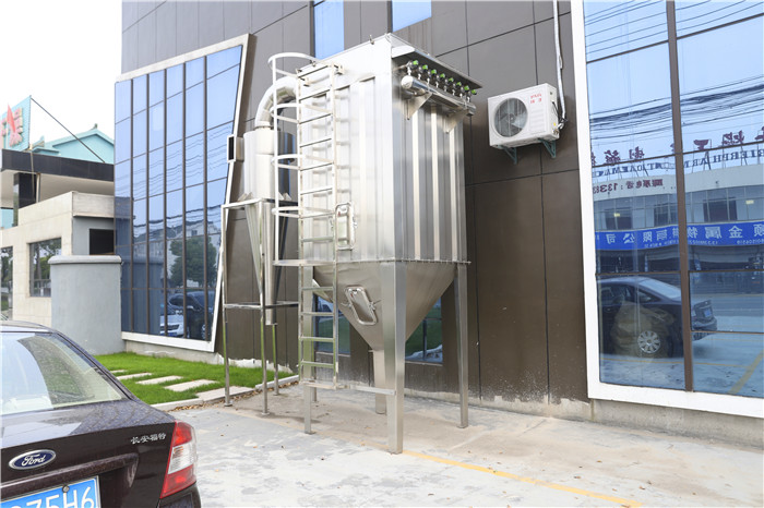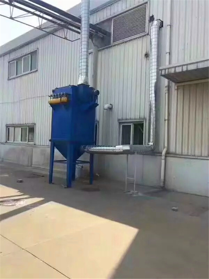 含塵氣體由除塵器中箱體中下部進入,通過濾袋將粉塵阻留在濾袋外邊面,凈氣進入袋內到上箱體由風機排出,隨著過濾時間的延長,濾袋上的粉塵層不斷積厚,除塵設備的阻力不斷上升,當設備阻力上升到一定值時,清灰裝置在脈沖控制儀的控制下開始清灰。清灰時,壓縮空氣以及短的時間按順序通過脈沖閥,經噴吹管向濾袋噴射,附著在濾袋外表面上的粉塵脫離濾袋落入灰斗,抽屜或直接落到倉內。清灰結束除塵器恢復正常工作。
